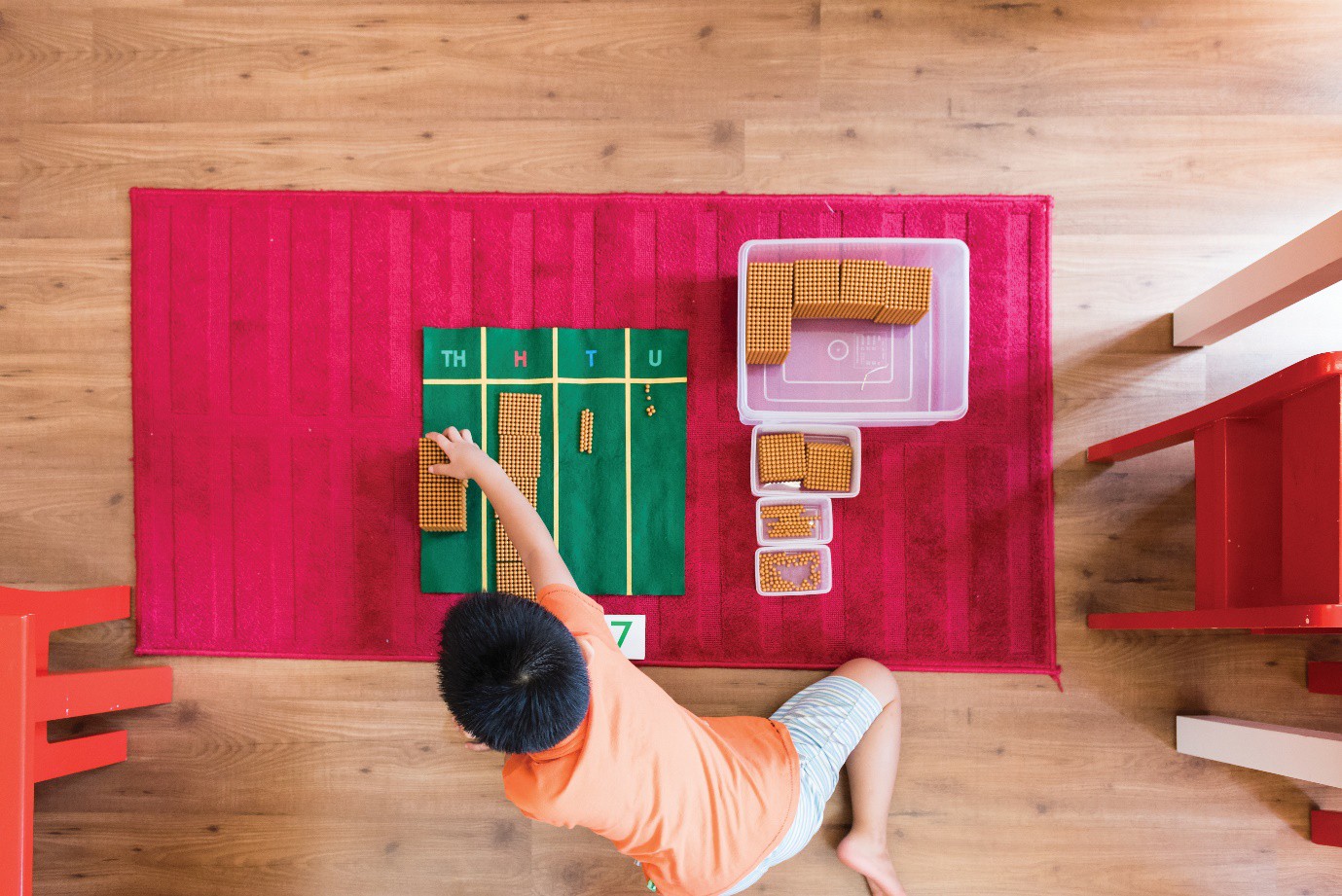 Việc sử dụng các đạo cụ toán học rất đơn giản và quen thuộc như số que đếm, hạt vàng... trẻ đều thích thú và say mê khi tham gia lớp học của Montessori. Qua việc sử dụng các đạo cụ này, trẻ sẽ dần có hiểu biết rõ ràng hơn về bốn phép toán cơ bản (cộng, trừ, nhân, chia) và dần dần tiến tới việc tính nhẩm và tổng hợp vấn đề, từ đó có sự chuẩn bị sẵn sàng cho việc học tập chính thức ở các cấp bậc giáo dục.